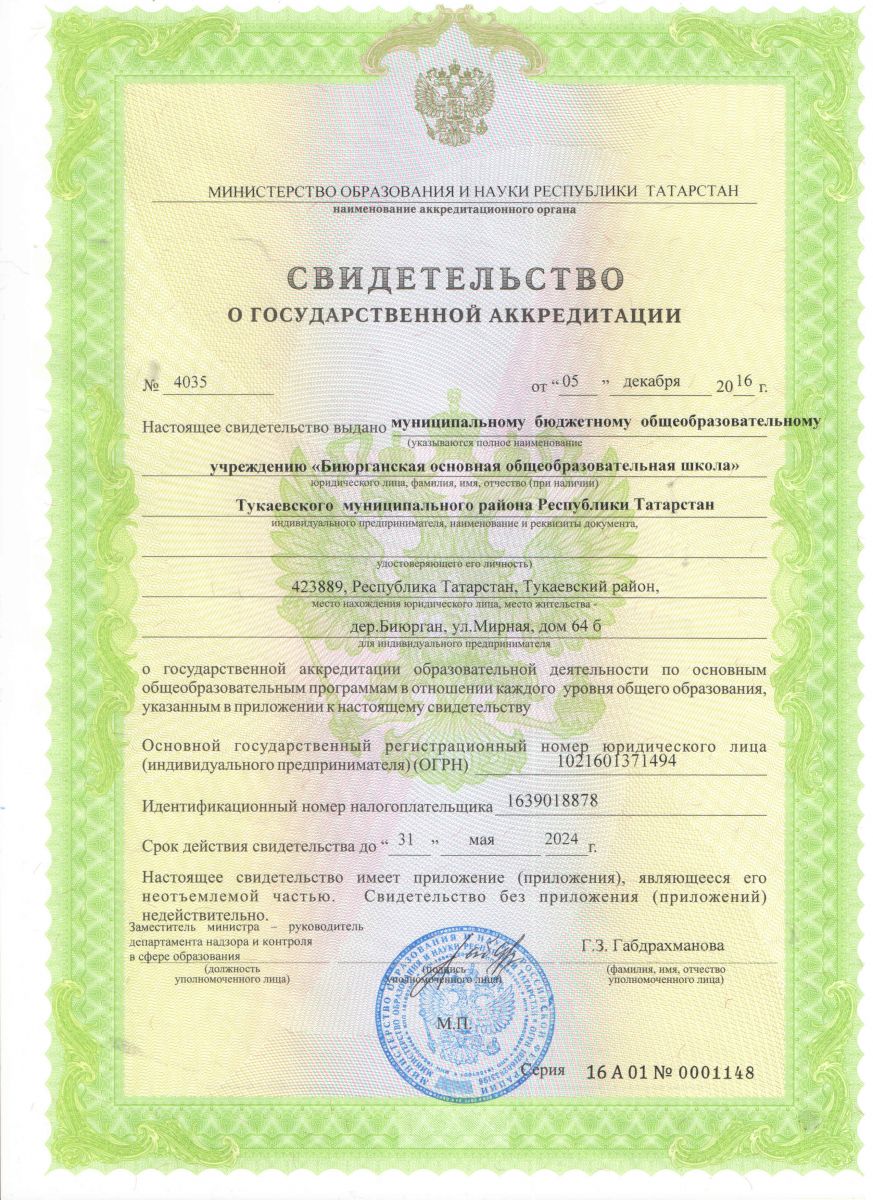 Муниципальное бюджетное общеобразовательное учреждение «Биюрганская основная общеобразовательная школа» Тукаевского муниципального района РТ/Татарстан Республикасы Тукай муниципаль районы "Боерган төп гомуми белем бирү мәктәбе" муниципаль бюджет гомуми белем бирү учреждениесе