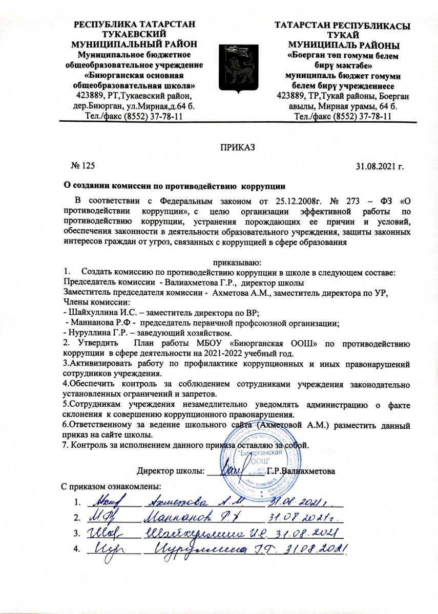 Положение о противодействии коррупции МБОУ «Биюрганская ООШ»