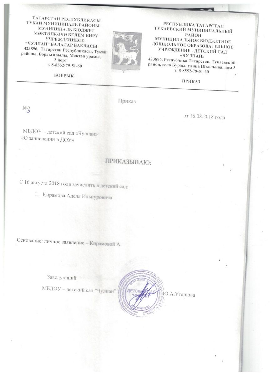 Короткое название: МБДОУ - детский сад "Чулпан"