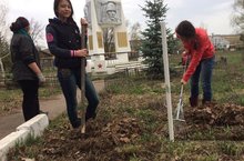 Ребята сгребали листву, мыли постамент, выносили ветки, убирали мусор вокруг ограды ,взрыхлили землю, а потом посадили цветы.