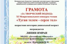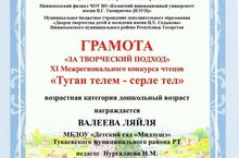 Грамота 11Межрегионального конкурса чтецов"Туган телем-серле тел" 12.02.2024