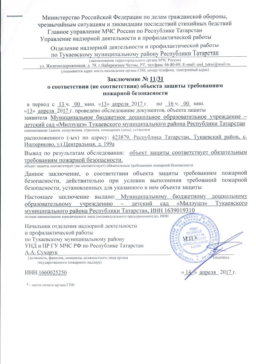 Заключение о соответствии объекта защиты требованиям пожарной безопасности