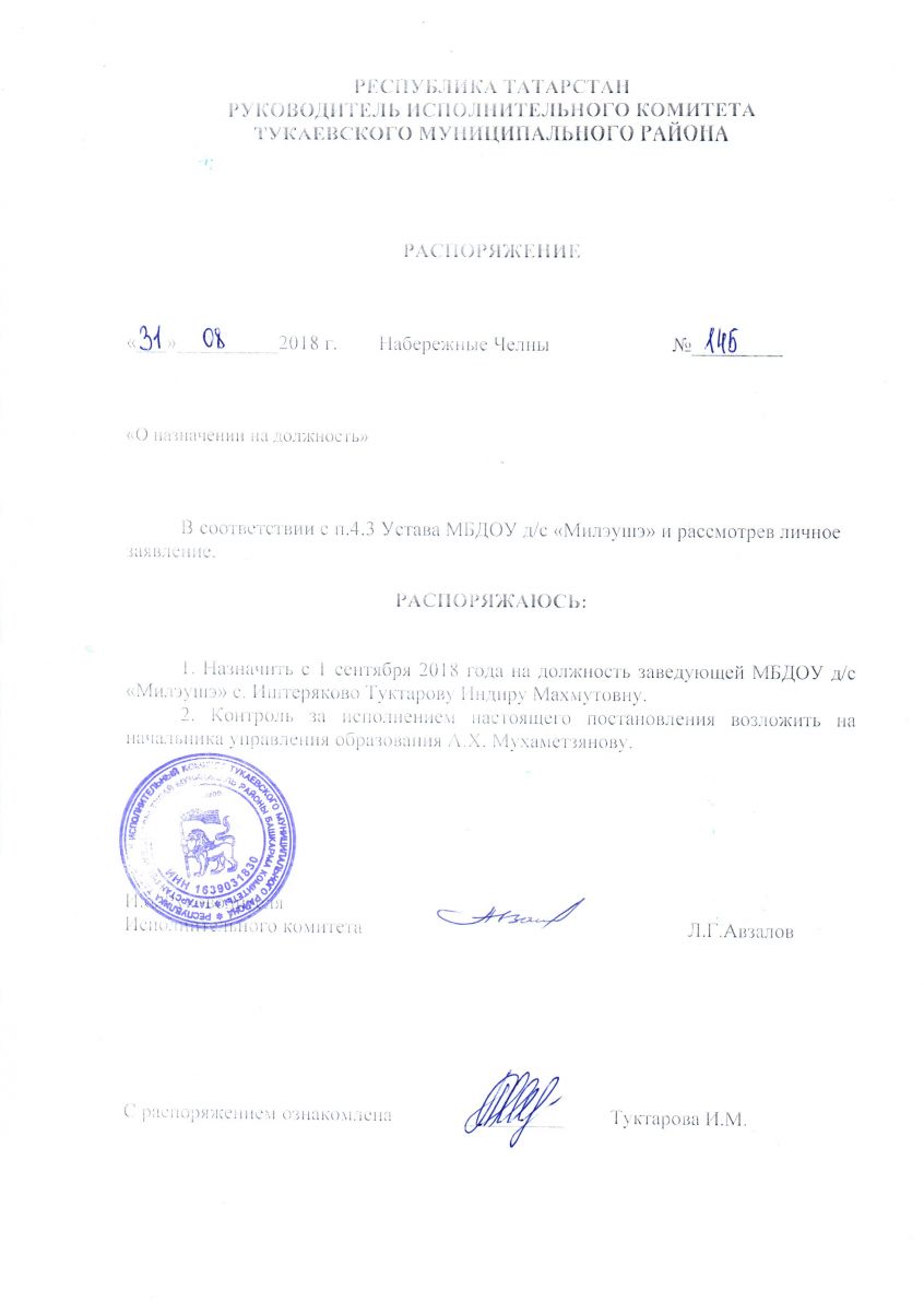 - Распоряжение о назначении на должность заведующего
