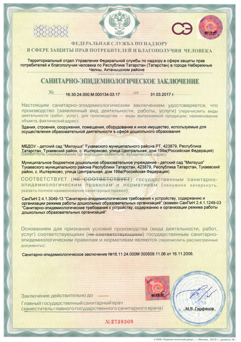Санитарно-пидемиологическое заключение