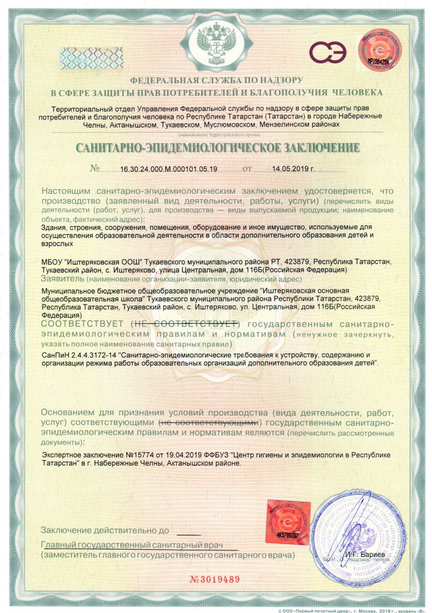 Санитарно-эпидемиологическое заключение на образовательную деятельность