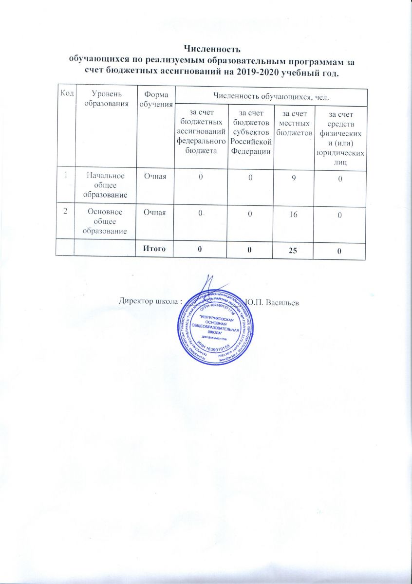 Численность обучающихся по реализуемым образовательным программам за счет бюждетных ассигнований на 2019/2020 учебный год