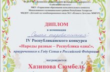 20 марта на базе МБДОУ №11 «Планета детства» г. Минделеевск прошел II этап конкурса. Каждый участник должен был подготовить три номера. Это творческий номер, представление национального праздника своего народа и презентация национального блюда. У Хазиповой Сюмбель в группе поддержки выступила большая и дружная семья. Папа, мама и бабушка вместе представили отдельные моменты праздника «Навруз» и презентовали блюда татарской кухни «Чак-чак» и «Кош теле».