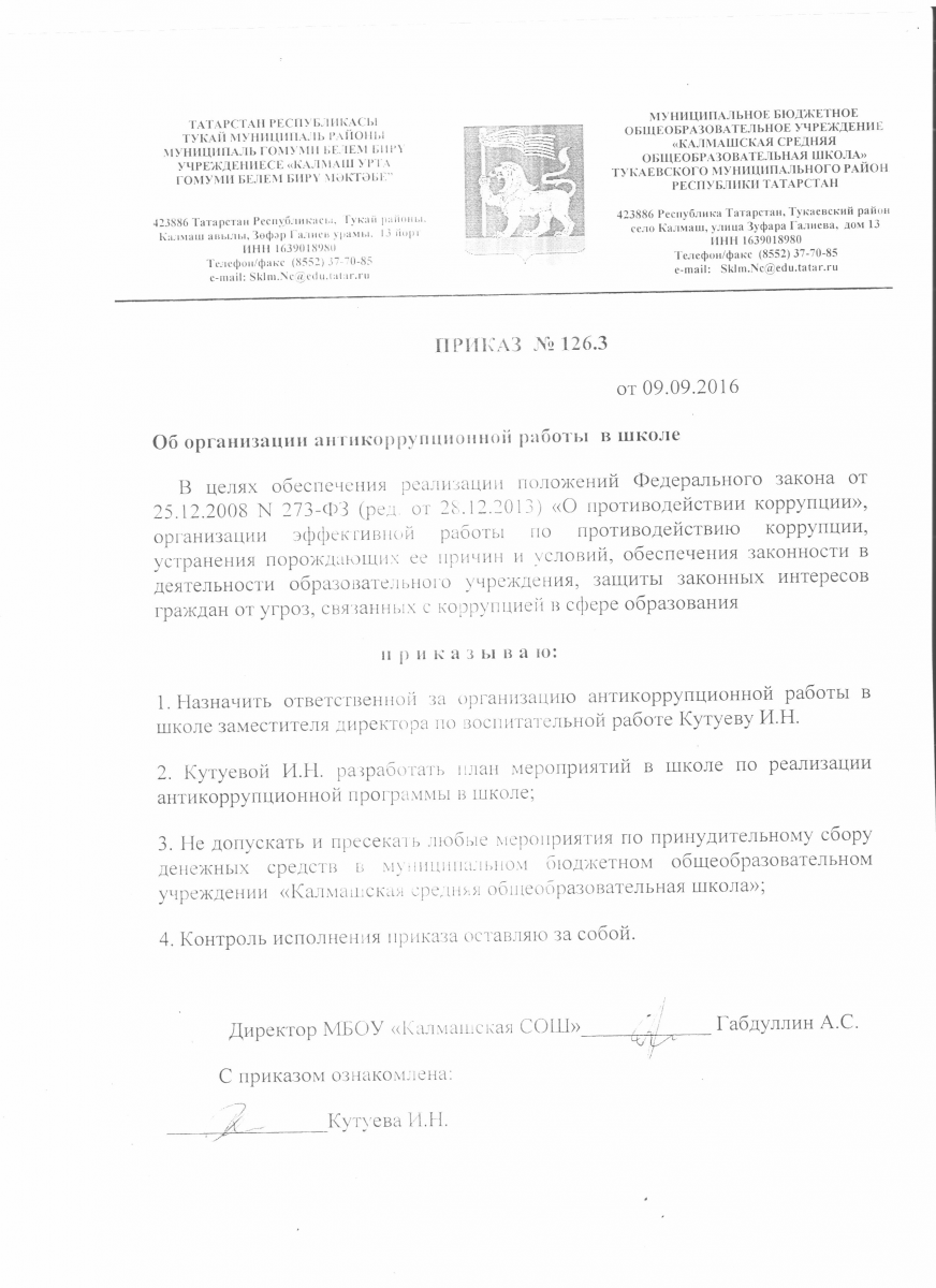 Муниципальное бюджетное общеобразовательное учреждение «Калмашская средняя общеобразовательная школа» Тукаевского муниципального района Республики Татарстан/ Татарстан Республикасы Тукай муниципаль районы "Калмаш урта гомуми белем бирү мәктәбе" гомуми белем муниципаль бюджет учреждениесе