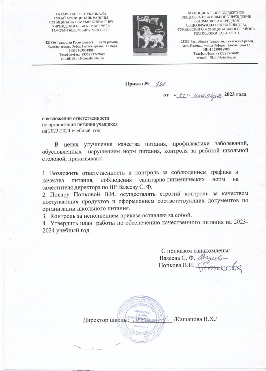 Приказа об организации горячего питания в 2023-2024 учебном году