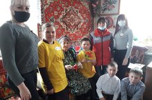 Тыл хезмәтчәне Хикматуллина Гәүһәр апаны социаль хезмәткәрләр һәм мәктәп волонтерлары якынлашып килүче җиңү көне белән тәбрикләделәр.