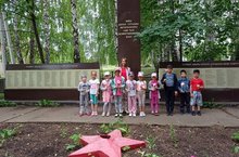 Вспомнили как началась Великая Отечественная война. В обелиск положили бумажные цветы, сделанные детьми. Посмотрели фильм "Чтобы помнили..."