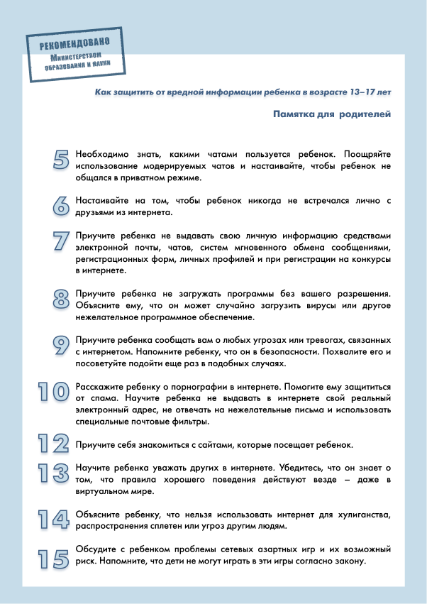 Как защитить от вредной информации ребенка в возрасте 13-17 лет (продолжение)