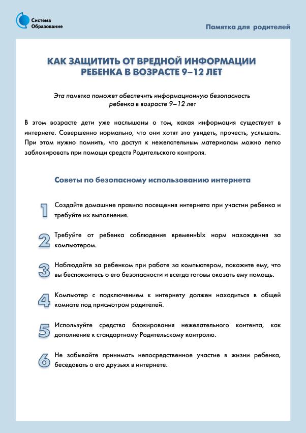 Как защитить от вредной информации ребенка в возрасте 9-12 лет