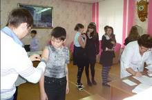 Врачи участковой больницы делали прививки детям против гриппа