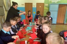 3 мая на базе "Князевской СОШ" был проведён мастер-класс учителем начальных классов Яруллиной Лайсан Мударисовной,с учащимися 1,3,5 классов. Ребята сделали гвоздику, где 9 мая возложат на памятник в память о ВОВ.