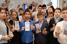 Учащимся раздали информационные буклеты. Пятым классам раздали суточный паек "блокадного хлеба"