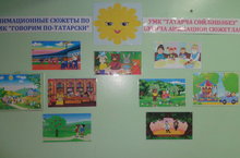 В рамках подготовки к конкурсу "Лучший билигвальный детский сад" коллектив детского сада обновляет предметно-развивающую среду, стенды и т.д. Воспитатель Мустафина Э.А. показала фрагмент занятия по обучению татарскому языку для представителей Комсомольской СОШ и начальника управления образования Исаева Р.Р.
