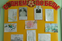 В преддверии праздника «День Победы» в детском саде прошел утренник. Музыкальный руководитель Шарифьянова А.Н. показала детям презентацию о войне. Рассказала об основных событиях. Затем дети рассказывали стихи и пели песни о Победе. Накануне в детском саду была организована тематическая выставка семейных плакатов и рисунков, в которой наиболее активное участие приняли родители воспитанников средней группы.