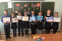 Во втором классе прошёл конкурс рисунков, посвящённый Дню космонавтики.