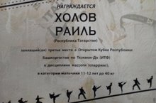 Ученик 6 класса Холов Раиль награжден дипломом победителя 3 степени в Соревнованиях Республики Башкортостан по тхеквондо. Молодец!!! Поздравляем!!!