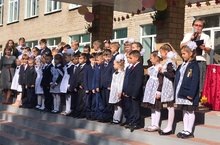 Нарядные ученики и ученицы с пестрыми букетами цветов, учителя и родители заполнили школьный двор. Звучит музыка, и все классы строятся на школьном дворе. По традиции первыми представляют малышей-первоклассников, их в этом году 35.