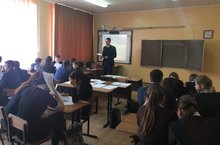 21 апреля, в рамках праздника местного самоупраления, в нашей школе был проведен тематический урок. Учитель истории Адель Гумарович рассказывал об органах местного самоуправления, ребята знакомились с нормативными документами. В конце урока была проведена небольшая деловая игра.