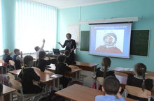 В День Космонавтики для учеников младших классов провели урок, на котором детям рассказали о первом полёте человека в космос, Ю. Гагарине, совершившем этот полёт и о развитии космонавтики в стране.
