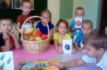 В ходе занятия воспитатель Ситдикова М.М. познакомила детей с фруктами и овощами ближайшего окружения, которые растут в наших садах и огородах. Такие занятия в первую очередь помогают обогатить словарный запас наших воспитанников.