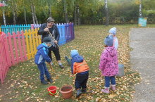 "Кояшкай" балалар бакчасында тәрбияләнүче балалар бача территориясен яфраклардан арындыруга үзләреннән дә өлеш керттеләр 28.09.2016