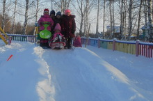 Биек-биек тау битендә чана шуып уйныйбаз.