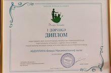 Биология укытучыбыз Абдуллина Ф.М. "Мәгариф" журналы уздырган "Яшел - бишек-2020" конкурсының "Биология" номинацияседә "Кыр казлары артыннан..." язмасы өчен 1 дәрәҗә диплом белән бүләкләнде.