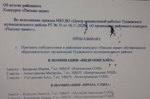 Ученик 7 класса нашей школы Королев Никита занял 1 место в конкурсе "Письмо мама". Руководитель Хамидуллина М.Н.