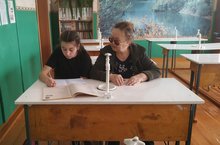 Безнең мәктәп укучылары һәр шимбә көнендә дәресләрдән соң, авыл китапханәсендә рәсем ясау серләренә өйрәнәләр.