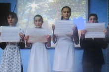 5,7нче сыйныф укучылары укытучыларны һәм ветеран укытучыларны тәбрик иттеләр. (җитәкчесе Фарухшина Н.Я.)
