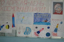 12 апрель- Космановтика көне"нә багышланган рәсемнәр күргәзмәсендә башлангыч сыйныф укучыларының рәсемнәре урын алды.
