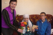 Мәктәп укучылары тәрбия эшләре буенча директор урынбасары Гараева Р.М. белән авылыбызда яшәүче соңгы сугыш ветераны янында булдылар. Алар ветеран Мәрьям апага үз куллары белән бәйләнгән чәчәк букеты (әзерләүче башлангыч сыйныф укытучысы Гилязова Р.Ф. иде) һәм "Бердәм Россия" партиясенең өчпочмаклы котлау хатын тапшырдылар.