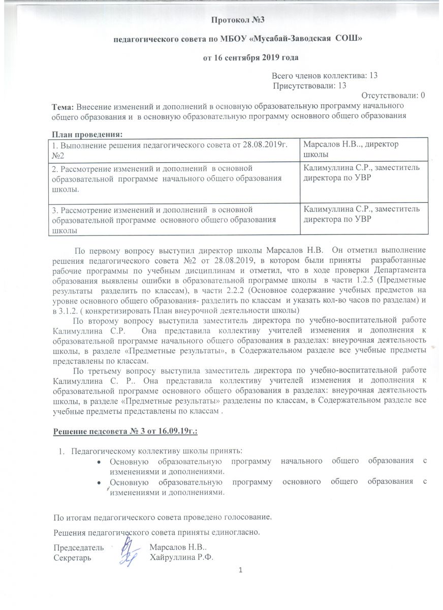Протокол педагогического совета №3