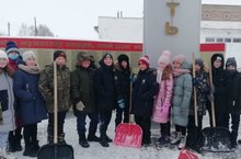 В рамках месячника, посвящённого гражданско-патриотическому воспитанию (месячник оборонно-массовой работы) обучающиеся 5 класса (классный руководитель Солдатова Татьяна Павловна) очистили памятник ветеранам ВОВ от снега.