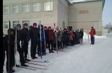 Сегодня в школе проходит Лыжня Татарстана - 2014. Участвуют все учителя и ученики.