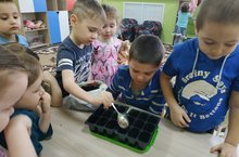 Воспитанники средней группы произвели посадку семян цветов для клумбы возле нашего детского сада.