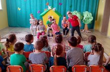Воспитанники подготовительной группы представили детям младших групп спектакль по мотивам русской народной сказки "Теремок". Дети с радостью показали свои актерские способности. Малыши восторженно восприняли приход артистов, внимательно, с большим интересом смотрели сказку. Остались довольны все: и артисты, и зрители.