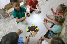 Сегодня в гости к ребятам средней группы приходил Весёлый Ёжик. Ребята познакомили Ёжика с дарами осени и слепили ему гостинцы.