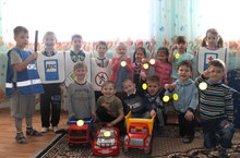 ГИБДД хезмәткәре Гатауллин Радик Мавлетгалеевич балаларнын юл йөрү кагыйдәләрен ничек белүләрен тикшерде, тагын бер кат балалар белән кагыйдәләрне искә төшерде. Яхшы белгәннәре өчен Радик Мавлетгалеевич балаларыбызга караңгыда ут яктыртучы смайликлар тапшырды.
