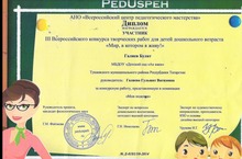 Воспитанник МБДОУ - детский сад "Ак каен" Галиев Булат принял участие в III Всероссийском конкурсе творческих работ для детей дошкольного возраста "Мир, в котором я живу!" в номинации "Моя поделка" и был награжден дипломом участника. Поздравляем и желаем творческих успехов!