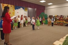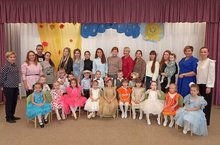Первоклассники Новотроицкой школы, еще вчера воспитанники детского сада, пришли торжественно поздравить работников детского сада "Ромашка".