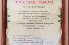 Почётная грамота за 2 место в муниципальном конкурсе "Зимняя фантазия-2017" 30.01.2017