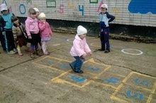 Сегодня у нас прошли соревнавания между средней и старшей группами в игре "Веселлые классики".
