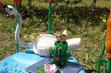 Сотрудники МБДОУ детский сад "Ромашка" своими руками делают участок сказочно прекрасным. Все поделки сделаны из старых, отслуживших вещей. Всё это делается впреддверии Выпуска детей в школу и Дня защиты детей.