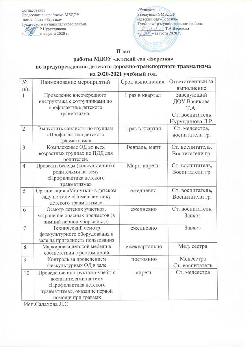 План работы по обучению правилам безопасного поведения на дорогах и по профилактике ДДТ на 2020-2021 учебный год