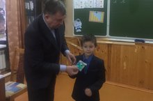 Сегодня директор школы Махмутов Б.Г. вручил учащимся начальных классов светоотражающие брелки, которые можно прикрепить на одежду или рюкзак. Ребята вспомнили правила безопасного поведения на дороге.